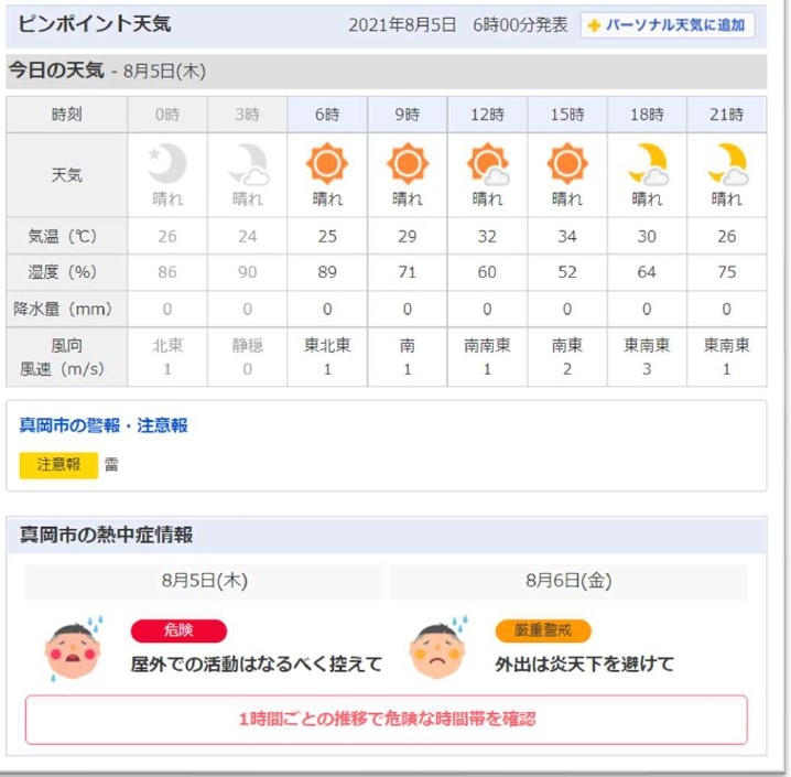 本日の真岡市の熱中症情報です。