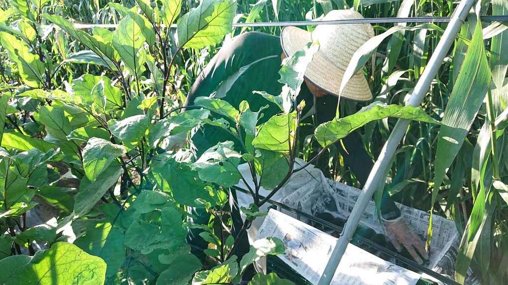 本日のなすの収穫を終えました。今月の生育もなかなか順調ですね。