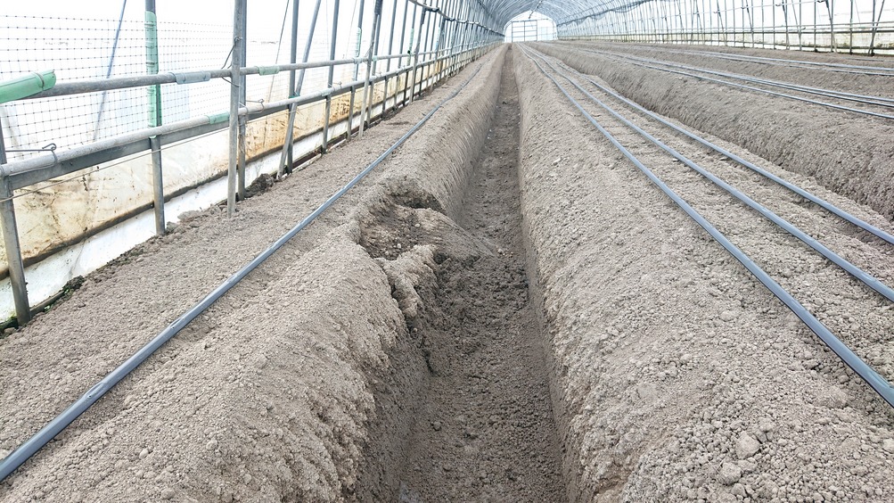 いちごの苗を観る傍ら、本圃の畝の状態も確認します。