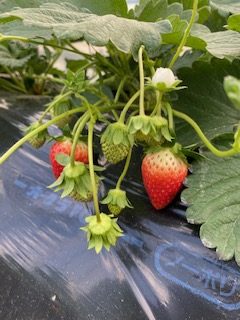 いちごの収穫が始まっています!いちごは気温が高いと味がのらずに赤くなってしまいます。皆様に美味しいいちごをお届けするために、もう少しお待ちください。12月からの販売を予定しております。